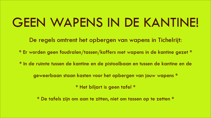 Schietsportcentrum Tichelrijt is géén schietvereniging! Ben je op zoek naar een schietvereniging welke gebruik maakt van het schietsportcentrum kijk dan op de pagina Verenigingen.